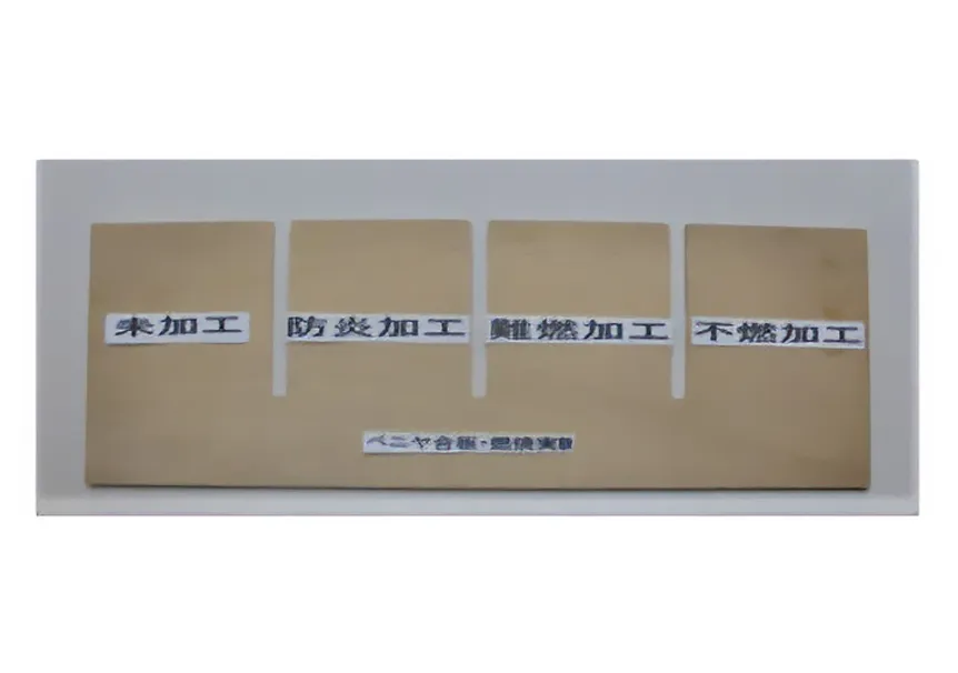 現在、ベニヤ合板t=4mmの不燃(建築基準法)に挑戦しています。